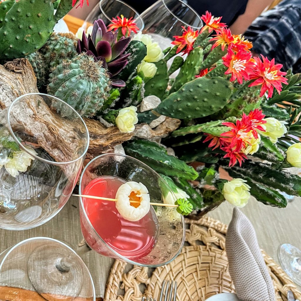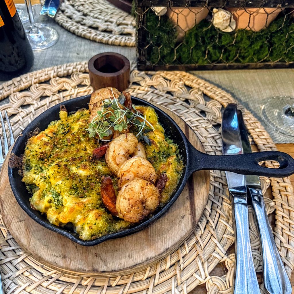 Our meal at Almond Tree is also noteworthy.  I did not get a good photo of the tree growing in the middle of the restaurant dangled with little white lights, but I do not think it is actually an Almond Tree and never asked where the name came from!  The theme here is comfort food with a Caribbean twist.  I started with mac n cheese plus local shrimp, enjoyed fried chicken as my main, and we were all presented with what I believe was mango key lime pie at the end.  All delicious!  As with everywhere else we dined during our stays at The Palms and The Shore Club, the settings and presentation were photo worthy every time!