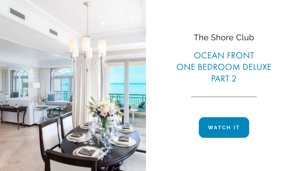 The Shore Club is like an HGTV episode.  Everything is fresh and trendy.  The gorgeous tiling everywhere was my favorite aspect.  There are 38 units total units, which are then subdivided to create the 110 room types.  I was lucky enough to be assigned a Deluxe Oceanfront One Bedroom which is 1,700 square feet and has an unparalleled ocean view, one lavish king-sized bed, and a full sofa-bed. With one-and-a-half baths, the whole family can get ready in a timely manner.  Instagram only allows a minute in Reels so I had to create two in order to share my room in its full glory!